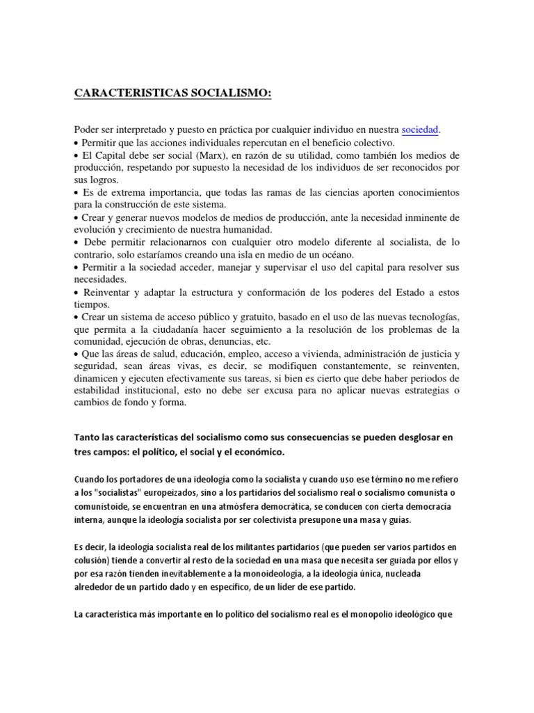 La economía social es toda actividad económica llevada a cabo por organismos en el sector social, basado en: democracia tomando decisiones. Propiedad social de los recursos. Distribución equitativa de beneficios entre sus miembros y.El comunismo es un sistema social gratuito con una forma de propiedad pública de los medios de producción y la completa igualdad social de todos los miembros de la sociedad.El salario, bajo el socialismo, expresa relaciones socialistas de producción y sirve como una medida del trabajo y como una medida de consumo. Su magnitud depende de la cantidad y la calidad del trabajo; Por lo tanto, caracteriza la contribución del trabajo de cada trabajador.Socialismo del siglo XXI en América Latina